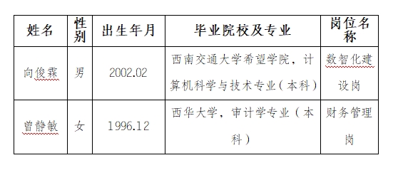 按照《四川省职工保障互助会2025年度公开招聘工作人员公告》有关规定,经笔试、面试、体检等相关程序,拟聘用向俊霖等2位同志为四川省职工保障互助会工作人员,现予以公示。