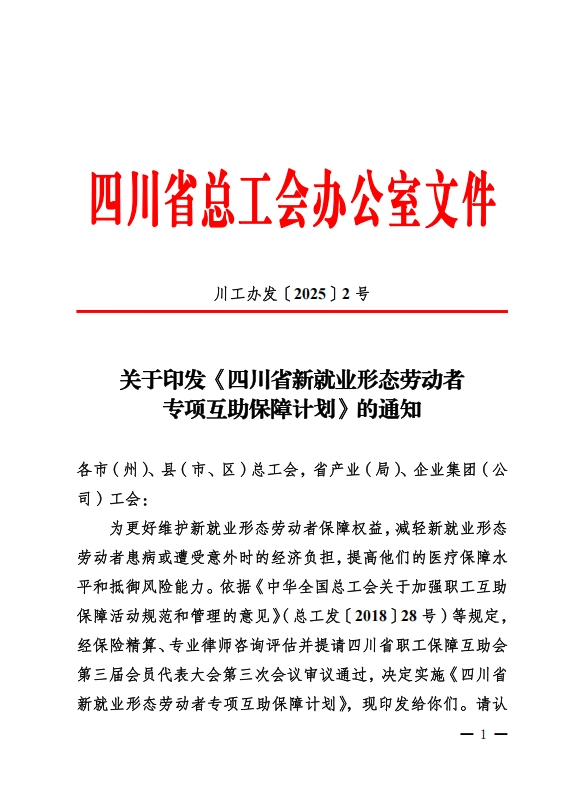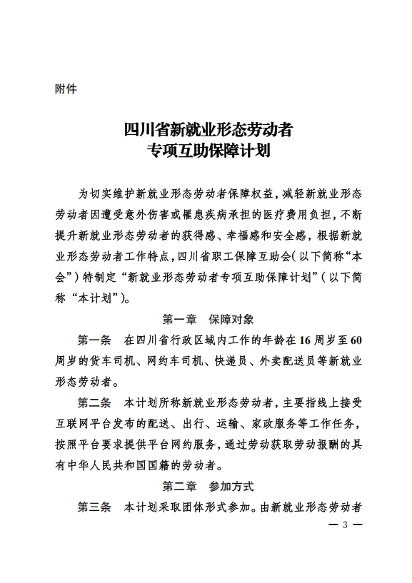 关于印发《四川省新就业形态劳动者专项互助保障计划》的通知
